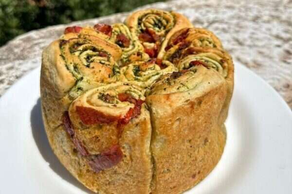 מתכון מאפה שמרים פסטו ועגבניות צלויות