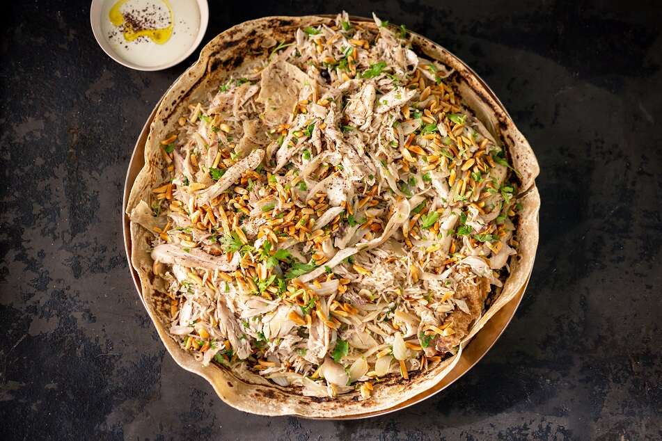 5. מומלץ להגיש לצד טחינה: נעזרים בחתיכת פיתה כדי לגרוף מהאורז ומהעוף, מזלפים מעל טחינה ואוכלים.