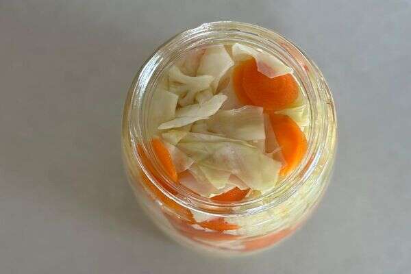 - מעבירים את התחמיץ לכלי נוח למזיגה וממלאים את הצנצנות עד סופן. אם הנוזל לא מספיק, אפשר להוסיף עוד מים רותחים.