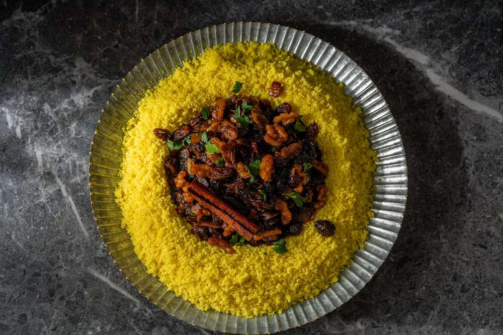 - מכסים ומאדים במשך שעה-שעה וחצי, לאחר שיוצרים גומות בקוסקוס כדי לאפשר לאדים להגיע לכל הגרגירים.