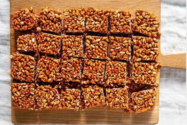 - מערבבים בקערה את פצפוצי האורז, הטחינה והסילאן עד שמתקבלת תערובת דביקה ואחידה.