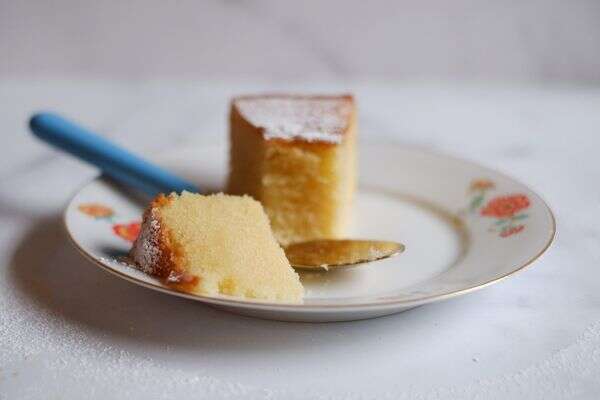- שופכים את הבלילה לתבנית, מפזרים שתי כפות סוכר על פני הבלילה ומכניסים לתנור למשך 50-55 דקות או עד שהעוגה מקבלת צבע זהוב שחום.