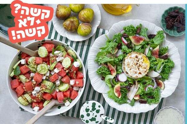 השווקים מלאים כעת במרכיבים שגורמים לכל סלט ביתי להיראות כמו מנת מישלן: אבטיחים מתוקים, תאנים ונקטרינות עסיסיות עם טעם של חופשה, ולצידם פאקוס פריך (מלפפון ערבי) שאי אפשר להפסיק לנשנש, עשבי תיבול שמפזרים ריח של גינה טרייה, וגבינות קרות שמשלימות את התמונה.