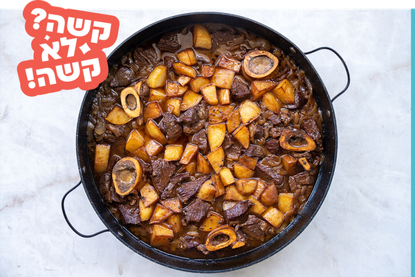 - מוסיפים לסיר את תפוחי האדמה המטוגנים. מכסים, מנמיכים את האש ומבשלים עוד כשעה וחצי על אש קטנה (המינימום הוא 3 וחצי שעות לכל התבשיל, אבל כל המרבה הרי זה משובח, ואם יש לכם זמן - מומלץ "לשכוח" את הסיר על הגז).