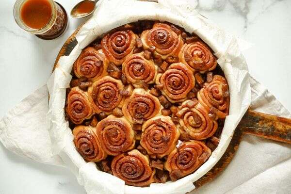 שבלולי תפוחים, קינמון עם רוטב קרמל מלוח