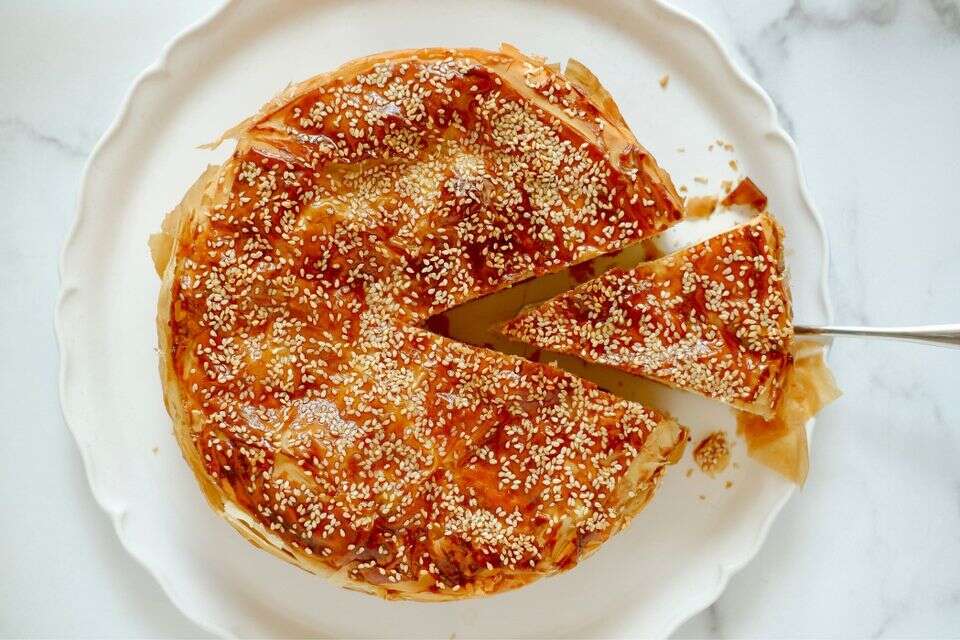 - מברישים את המאפה בביצה טרופה, מפזרים זרעי שומשום ומכניסים לתנור למשך 35-40 דקות או עד שהמאפה מקבל צבע עמוק ושחום.