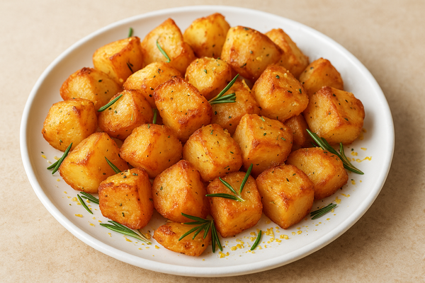 - בתום הזמן, מסננים את עודפי השומן, מפזרים מעל את מלח הרוזמרין ומערבבים קלות.