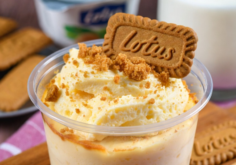 השילוב בין היוגורט היווני החמצמץ למתיקות של הלוטוס יוצר טעם שמרגיש לגמרי כמו עוגת גבינה, במיוחד כזה שמזכיר עוגת גבינה יפנית ללא אפייה.