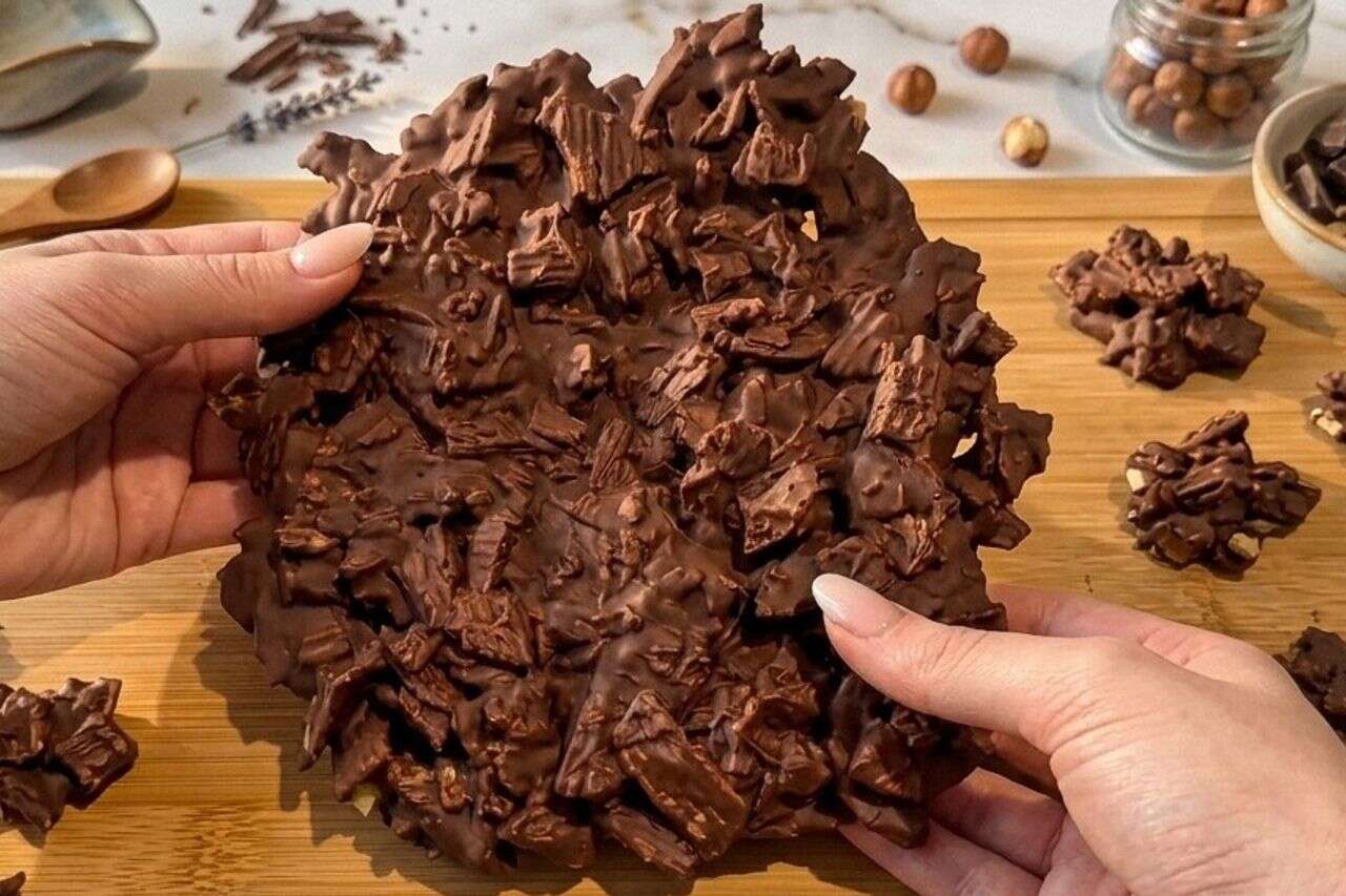 - מפזרים את העיסה המצופה על נייר אפייה בשכבה אחת. ונותנים לשוקולד להתקשות ולהתייצב, ולאחר מכן חותכים לצורות ולגדלים שאתם רוצים.
