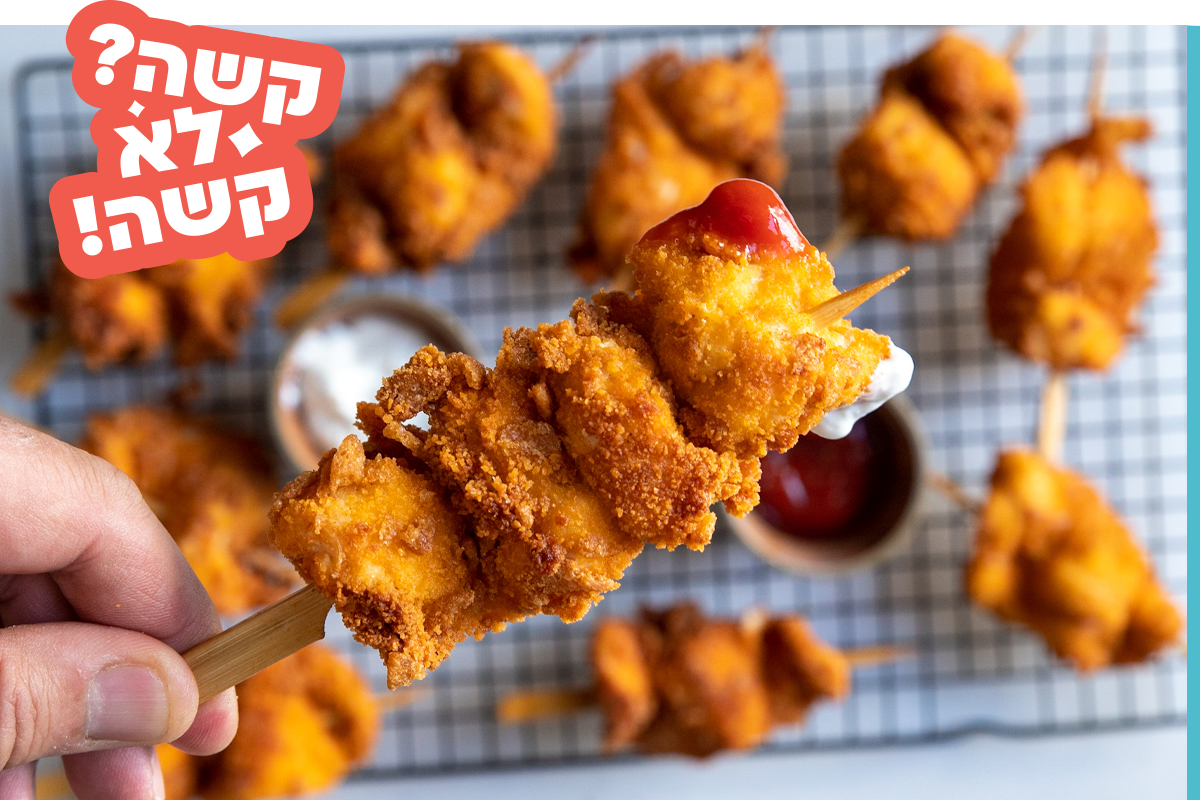 - מגישים את שיפודי השניצל הקריספיים לצד הפירה המנחם.