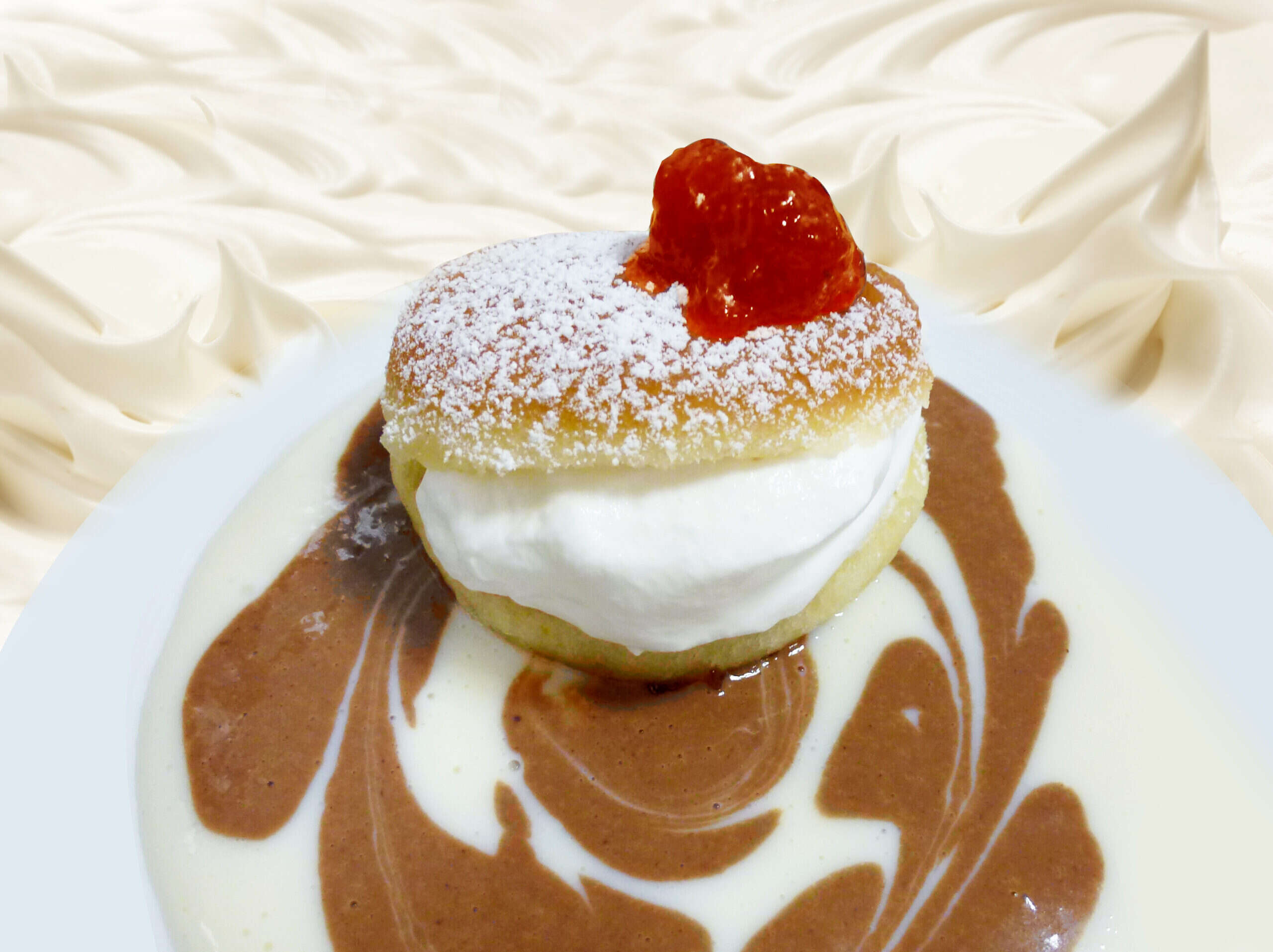 נמלא בעזרת כפית את הקצפת שנמצאת בראש הגביע של המילקי – גביע אחד מספיק בערך לשלוש סופגניות.