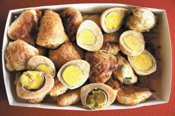 עומר בוחר להתחיל עם בורקס גבינה, הוא האהוב עליו ביותר וזה הבורקס הנמכר ביותר פה. מילוי הגבינה פשוט ומצטיין במליחות עדינה ומחמיא לבצק שגונב את כל ההצגה. אני נוגסת בבורקס תרד. לטעמי, יש בו גם מנגולד שמוסיף טעם חמצמץ ומשחק מרקמים בזכות גבעוליו הבשרניים. גם בורקס החצילים נזלל ואף ממנו לא נשאר פירור, אם כי החצילים במילוי לא היו עוקצניים מספיק.