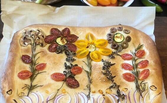 לרוב, מי שעוסק במלאכת הבישול והאפייה באופן אינטואיטיבי, לא יידרש למחשבה מאומצת על מנת ליצור אוכל פוטוגני. לעיתים, הקורלציה שבין צילום לאוכל יוצר מנות משובבות. כזאת היא פוקצ׳ת גינה, פוקצ׳ה קלאסית מעוטרת בתוספות קלאסיות ומוכרות למדיי, שמעוצבות כאדנית ססגונית ופורחת.