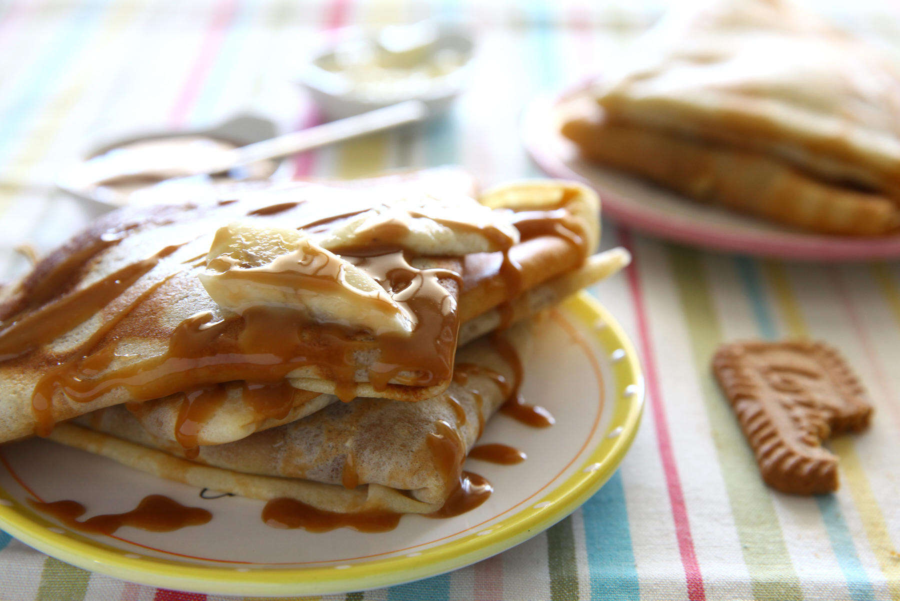 4. במחבת קרפים ממיסים מעט חמאה, יוצקים מצקת מבלילת הקרפים, משטחים את הבלילה לשכבה דקיקה ומזהיבים את העלה מצד אחד.