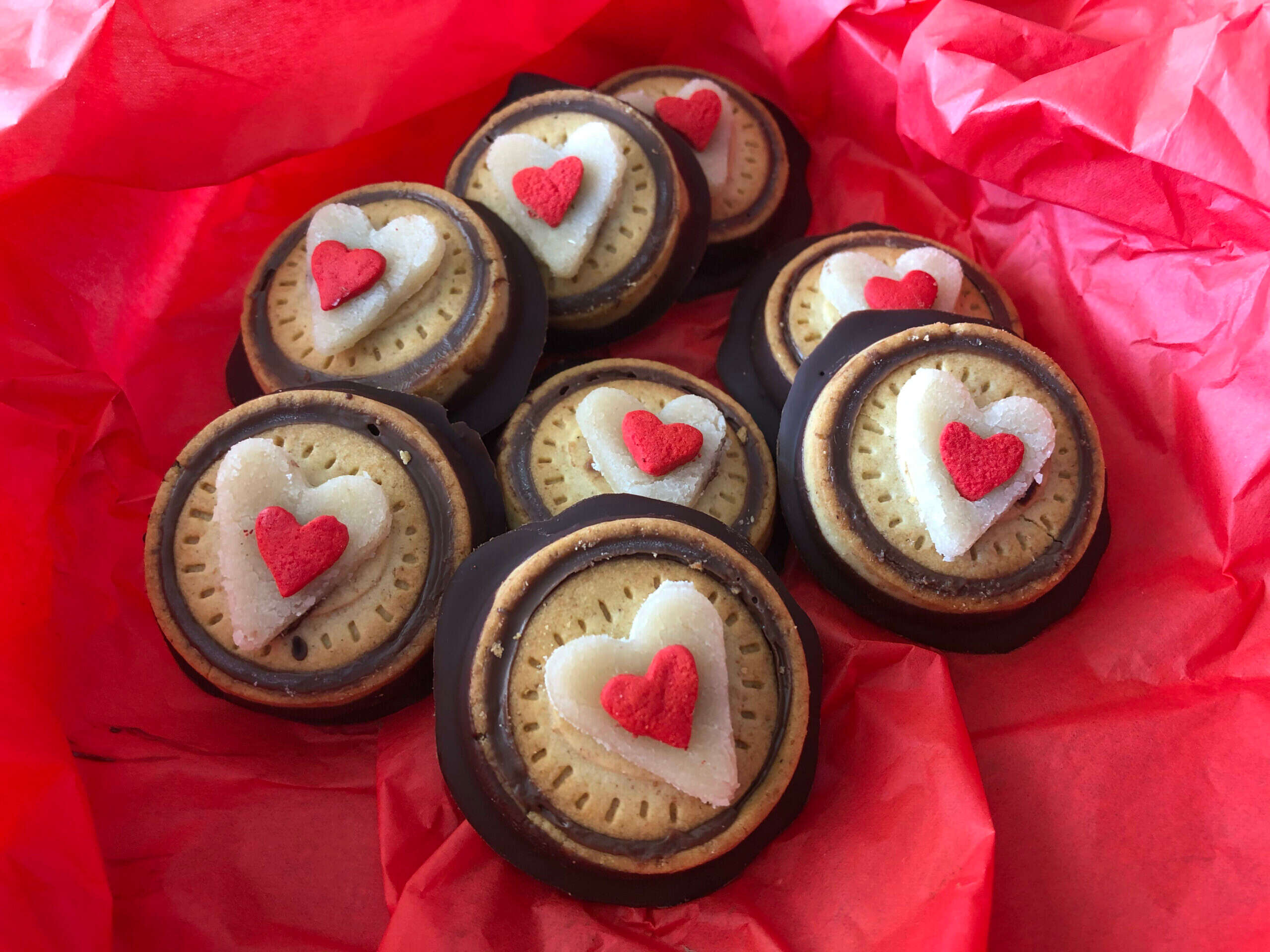 מדביקים את הלבבות לעוגייה בעזרת מעט נוטלה.