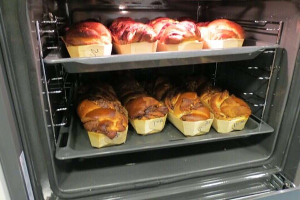 5. חוצים לאורך ל-2 חלקים שווים וקולעים צמה. מכניסים לתבנית באורך 30 ס"מ (אינגליש קייק מס' 3) ומתפיחים 45 דקות.