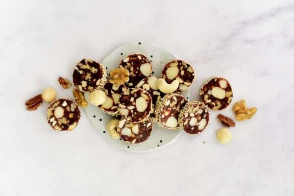 מערבבים היטב את מגוון האגוזים עם התמרים לתערובת דביקה.