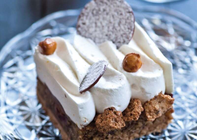 קינוח המצטיין בשלושה מרקמים שונים המשלימים עוגה נהדרת: ביסקוויט אגוזי לוז, שכבת קרנץ' אגוזי לוז וקרם שוקולד חלב עם פרנג'ליקו. פרנג'ליקו הוא ליקר איטלקי בטעם אגוזי לוז, תבלינים וקרמל.