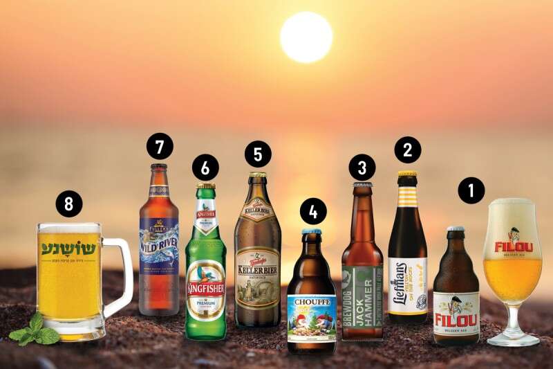 מימין: פילו, ליפמנ'ס, ג'ק האמר, שוף סוליי, קלר ביר, קינגפישר, פולר'ס וויילד ריבר ושושנע