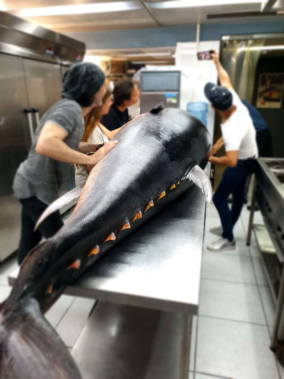 דג טונה ענק במשקל של 350 ק"ג נתפס אמש (רביעי) בנמל אשדוד ומשם עשה את דרכו לרבות ממסעדות הדגים בתל אביב, בראשן יאקימונו ברוטשילד, שילה, משייה ושיינע. כששמענו את הבשורה מיד עשינו את דרכנו ליאקימונו כדי לטעום מן הדג העצום בתקווה שנזכה לשחזר את הטעמים המדהימים בהם נתקלנו בטיול ביפן, בה אפשר להיתקל בדגים הללו בתדירות גבוהה יותר, כשהם במשקל ממוצע של 200 קילוגרם.