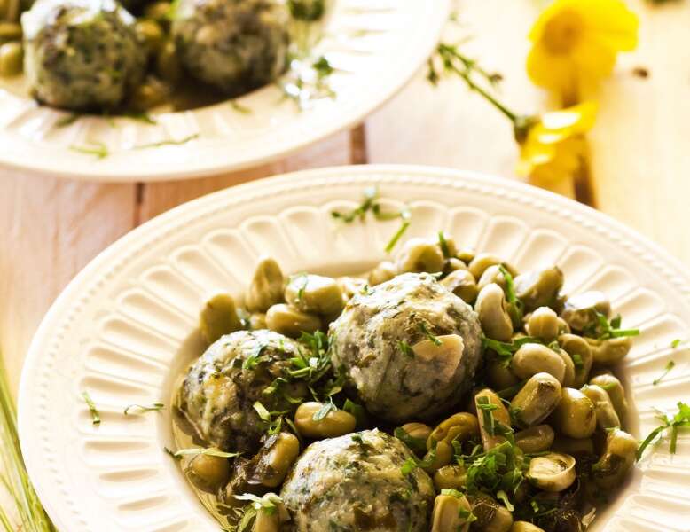 קציצות דג עם פול ירוק, סלרי וכוסברה