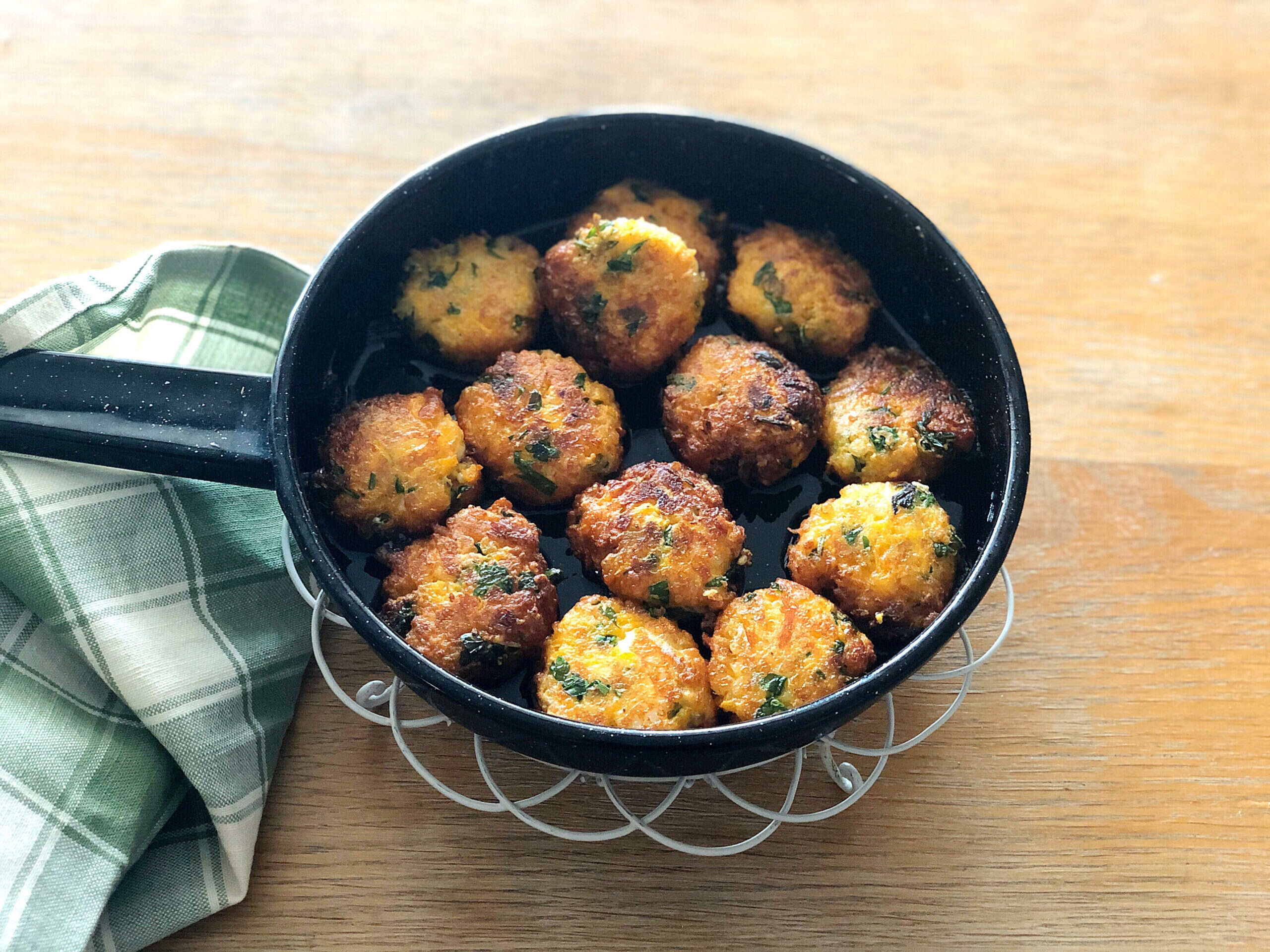 3. יוצרים לביבות קטנות ומטגנים במחבת בשמן בגובה ½ ס"מ.