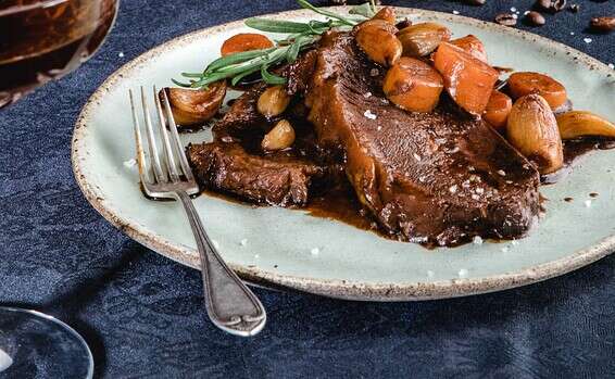 1 קילו בשר בקר לבישול ארוך, חתוך ל-4 נתחים.