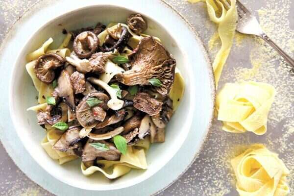7. מחממים 4 כפות שמן זית במחבת ומקפיצים את הפטריות הטריות. מתבלים במלח ובפלפל שחור.