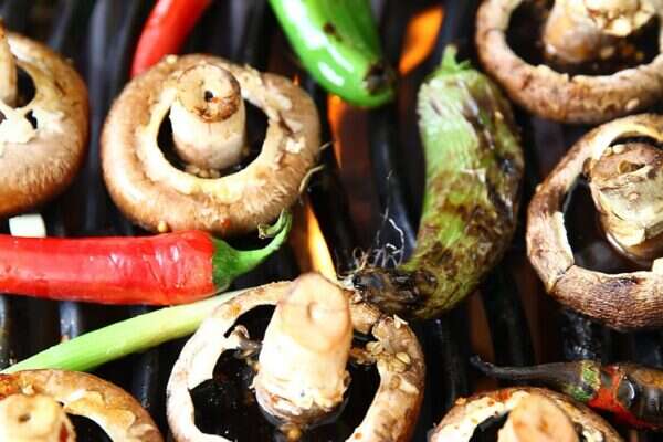 - לפטריות יש להוריד את ה"רגל" ולצלות במשך רבע שעה כשאר הופכים כל דקה ומברישים במעט ברבקיו עד שהפורטבלו יקבלו צבע כהה ואדום מבריק.