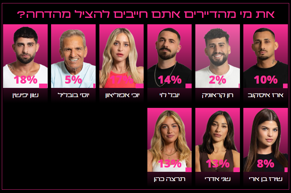 תוצאות סקר הדחה 27.8 צילום: רן יחזקאל