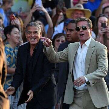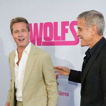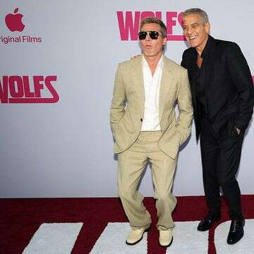 בראד פיט וג'ורג' קלוני מגיעים לפרמיירה ההוליוודית של הסרט החדש שלהם "הזאבים". קלוני בשחור מכף רגל ועד ראש, ופיט בחליפה בהירה. מעניין אם הם מתאמים.