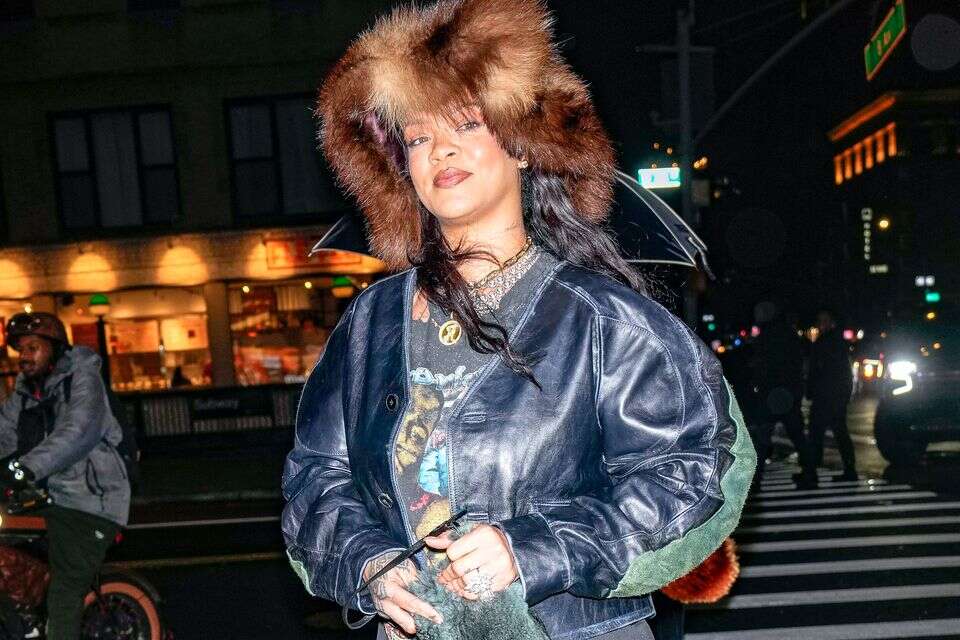 באירוע, ריהאנה לבשה חולצת טריקו עם הדפס גרפיטי, ג'ינס וגם מגפי בוגטה ונטה, שעולות 1,400 דולר. היא השלימה את הלוק עם כובע פרווה חום וגדול.
