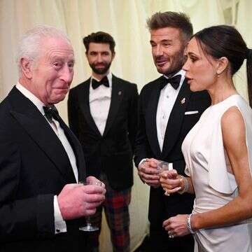 המלך צ'ארלס השלישי ללא ספק נהנה מהערב בחברת ויקטוריה ודיוויד בקהאם. בזמן שוויקטוריה נואמת באוזני המלך, נראה שדייוויד משעשע את צ'ארלס