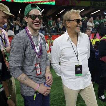 השחקנים פיט דיווידסון וקווין קוסטנר לפני סופרבול 2025, REUTERS/Mike Segar