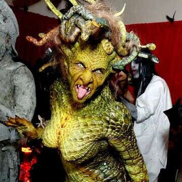 היידי קלום שוב הוכיחה למה היא מלכת ההאלווין הבלתי מעורערת, כשהפכה השנה למדוזה מצמררת במיוחד. עם גוף מכוסה בקשקשים, שיניים חדות ונחשים מתפתלים בשיער.