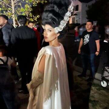 קורטני קרדשיאן לקחה כיוון גותי במיוחד והתחפשה לכלתו של פרנקנשטיין. בשמלה לבנה דרמטית, תסרוקת מחושמלת ואיפור שמזכיר סרט אימה ישן.