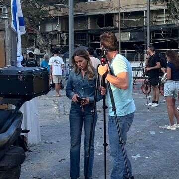 בתמונות היא נראית עם הצלם, מכינה את הפריים רגע לפני שתעלה לשידור.