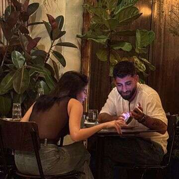 השניים נצפו במסעדה תל אביבית, כשהם חולקים שולחן קטן, צמודים למסכים ולצלחות.