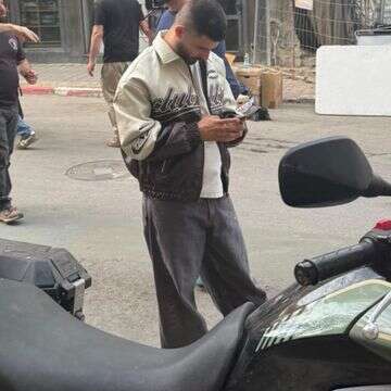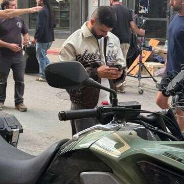 חסון נצפה על סט עמוס במיוחד, כשהוא חמוש בג'קט עור ומוקף באנשי צוות