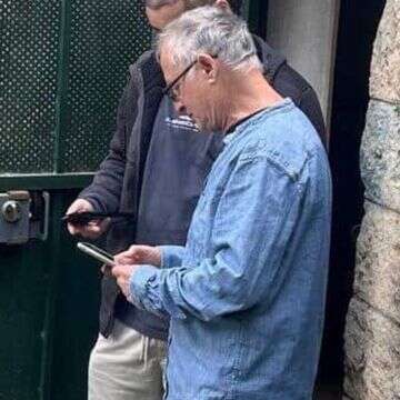 ביציאה בדיוק מהמקלט באותו הבניין בדיוק, תועד גם אגדת הקומדיה דב נבון.