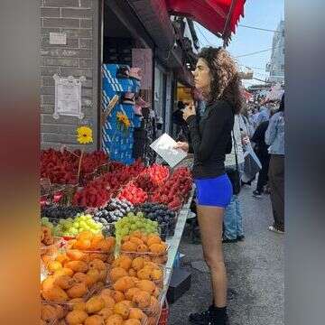 סאן מזרחי בשוק, ליד הפירות והירקות
