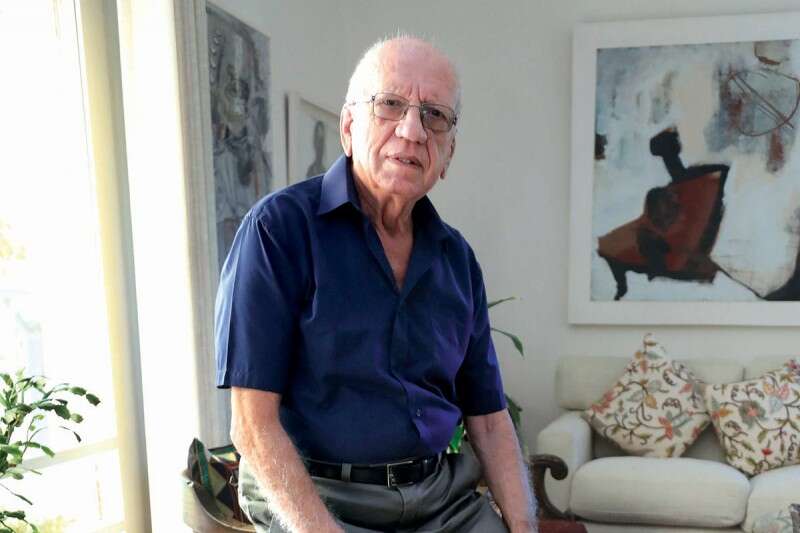 "יש לי רוטינת כתיבה טובה - אני מרים את הראש וכבר צהריים". מירון בביתו בתל אביב// צילום: גדעון מרקוביץ