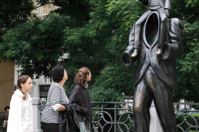 חיפש מזור לנפשו. פסל בהשראת קפקא במרכז פראג// צילום: רויטרס