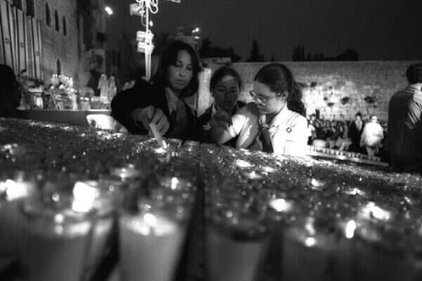 1981: טקס זיכרון לנספי השואה ברחבת הכותל המערבי בירושלים, בהשתתפות ניצולי שואה מרחבי העולם.