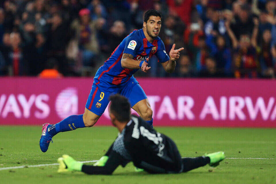 לואיס סוארס חוגג את השער. קבוצתו שוב חזרה מפיגור לניצחון // לואיס סוארס חוגג את השער. קבוצתו שוב חזרה מפיגור לניצחון