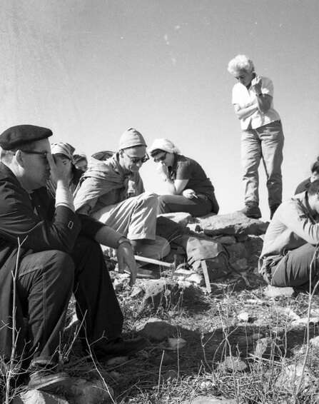 חברי החוג בטיול לקרני חיטין. עומדת קליר אפשטיין חברת ק. גינוסר וארכיאולוגית
