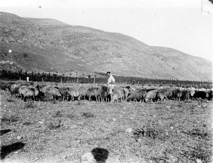 את ראשית דרכו בבית אלפא עשה אליעזר כרועה צאן. בתצלום עם עדר הכבשים של הקיבוץ לרגלי הגלבוע, 1927.
