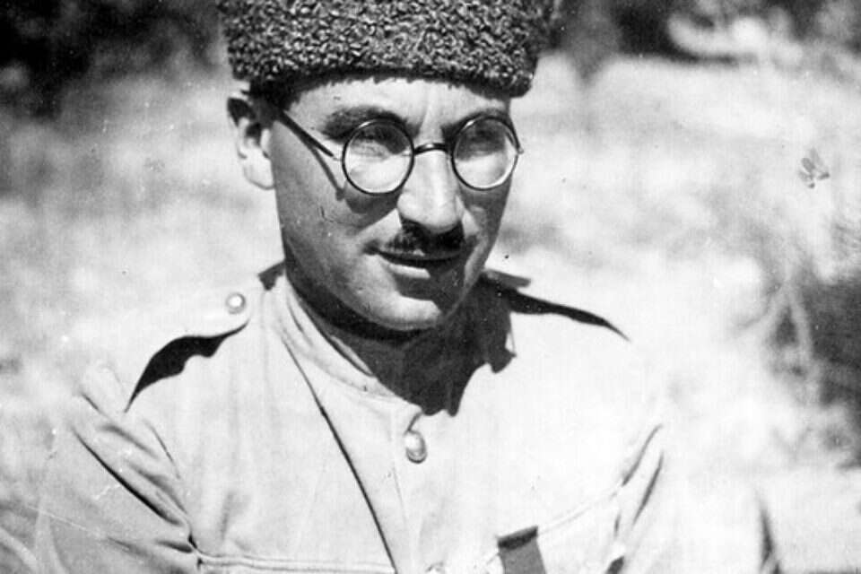שלושה מוסקטרים בחצר בית אלפא. מימין: סקלרץ, לידו שיקו וסנדר פרוכטר, 1930.