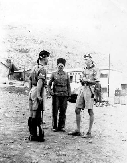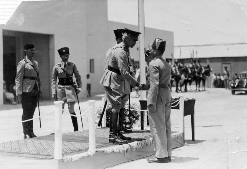 1936, ליד ארמון הנציב בירושלים. הנציב העליון ארתור ווקוף מעניק אות הצטיינות לאליעזר.