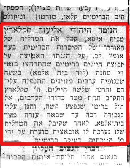 1936, סקלרץ מצורף לגדוד הסקוטי, שישב בבית אלפא.